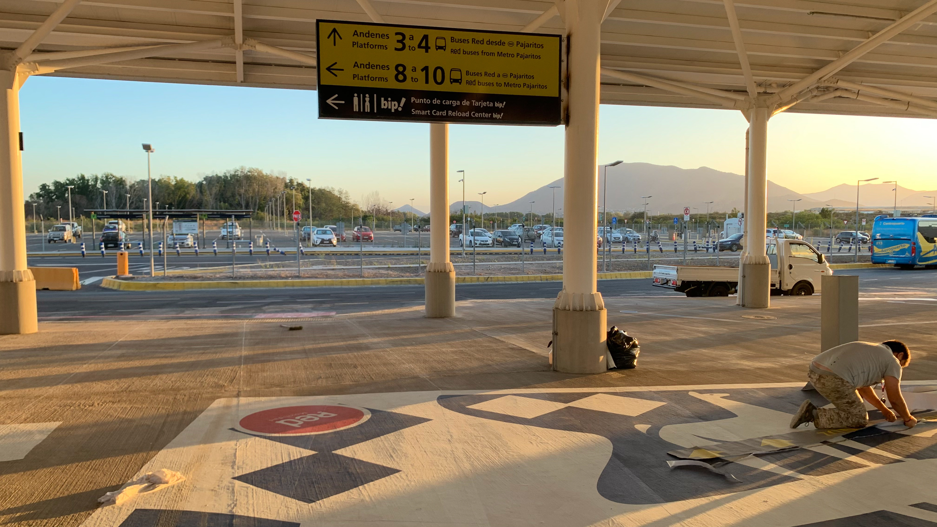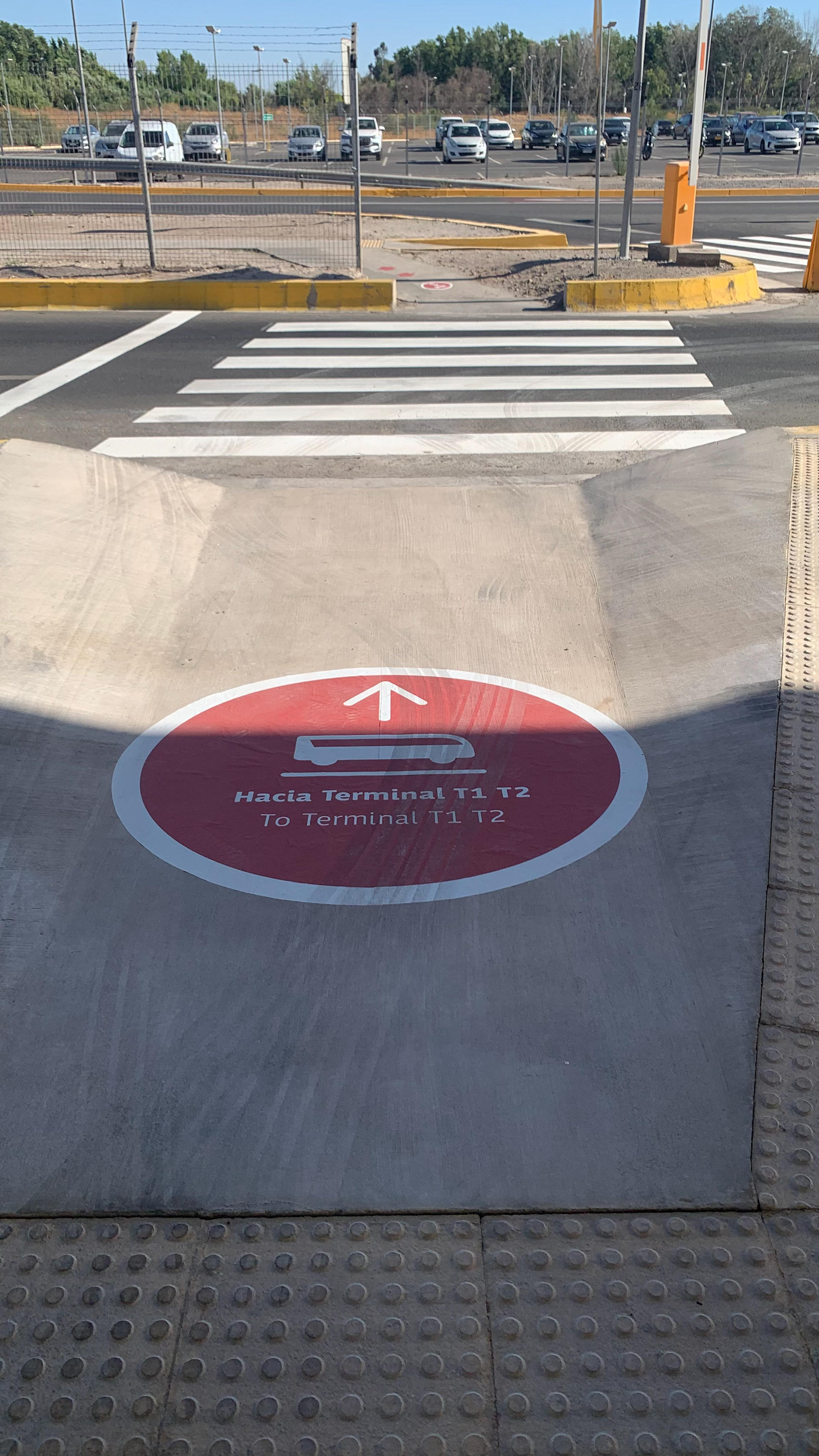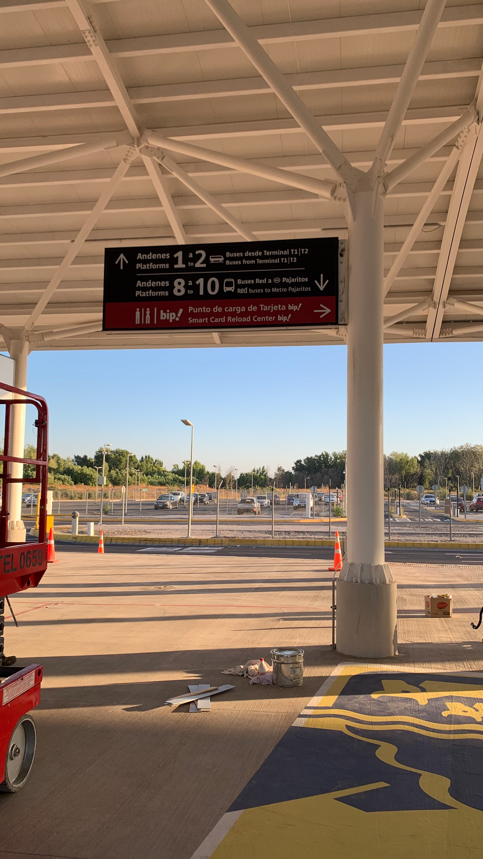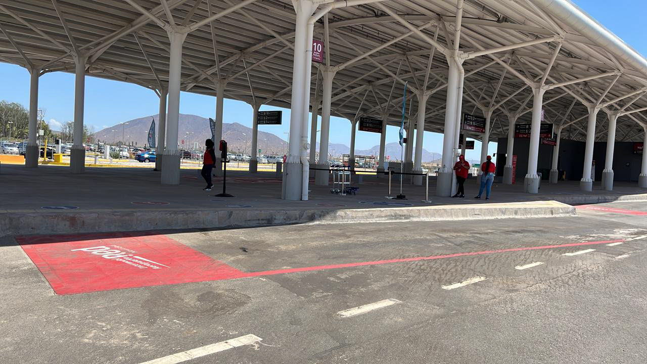 Para del Nuevo Terminal buses de Red de Movilidad en el Aeropuerto Internacional Arturo Merino Benites de la ciudad de Santiago de Chile