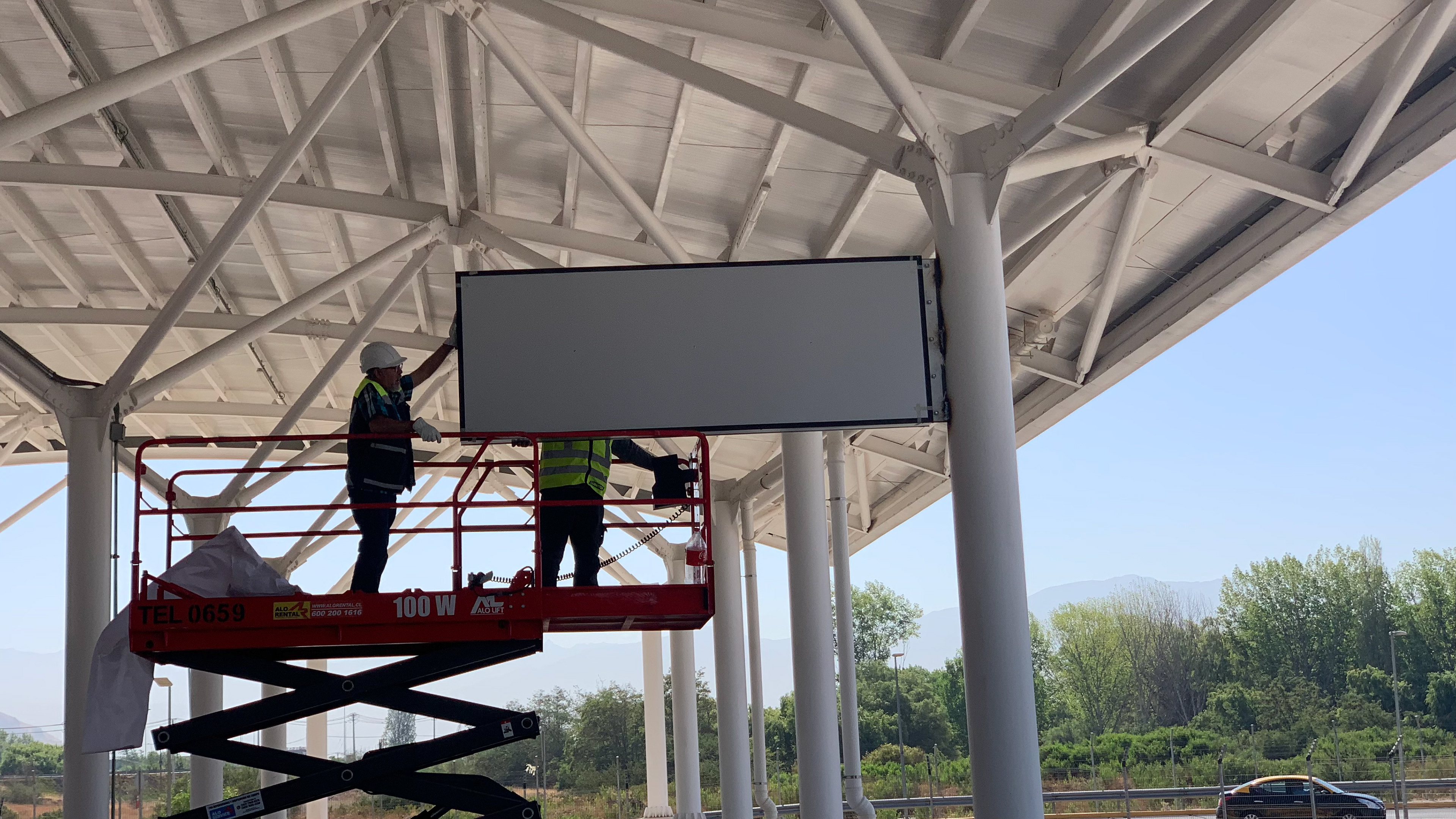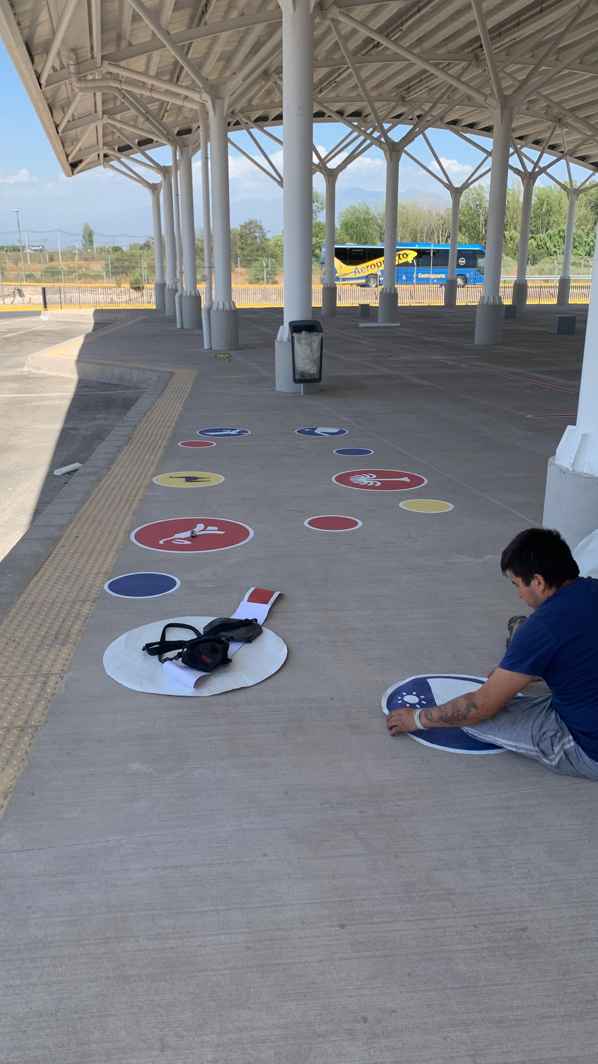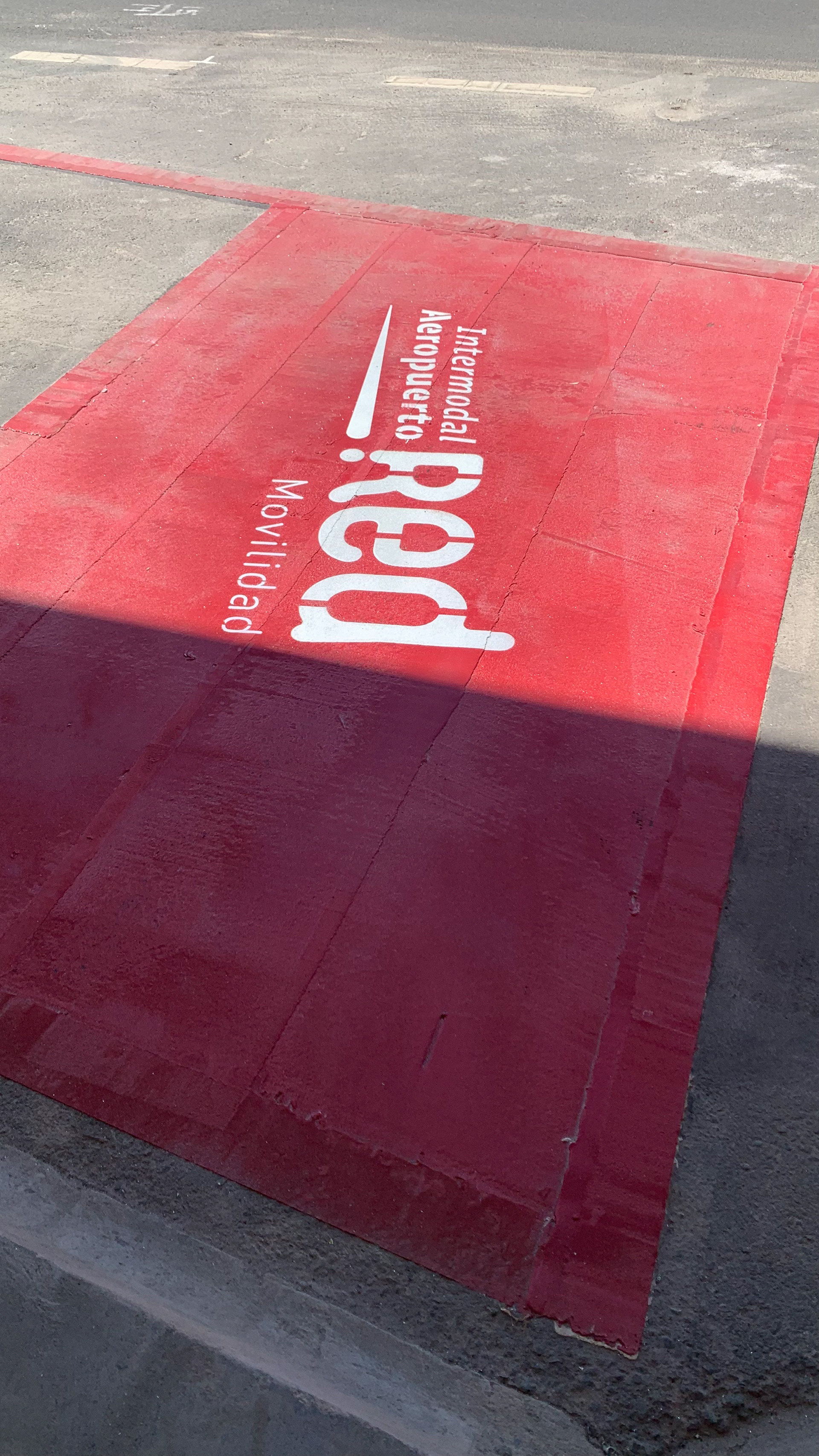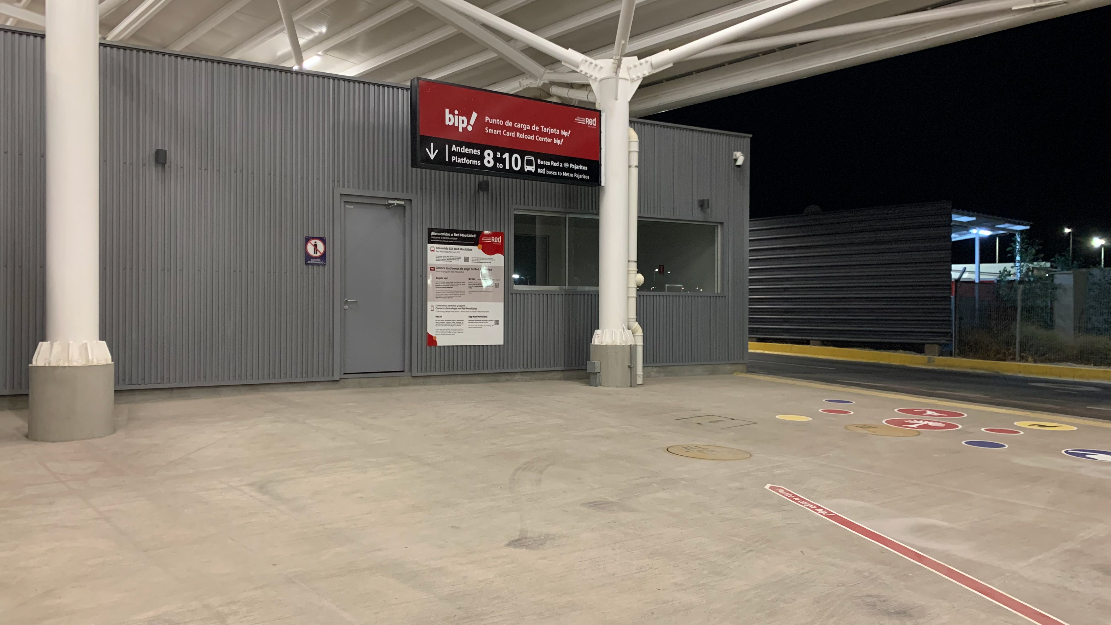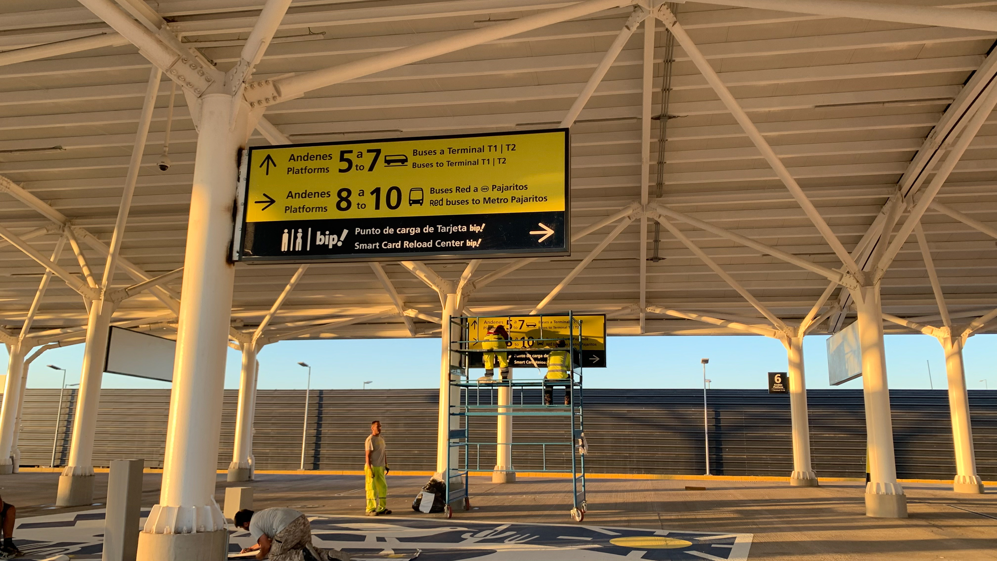Para del Nuevo Terminal buses de Red de Movilidad en el Aeropuerto Internacional Arturo Merino Benites de la ciudad de Santiago de Chile