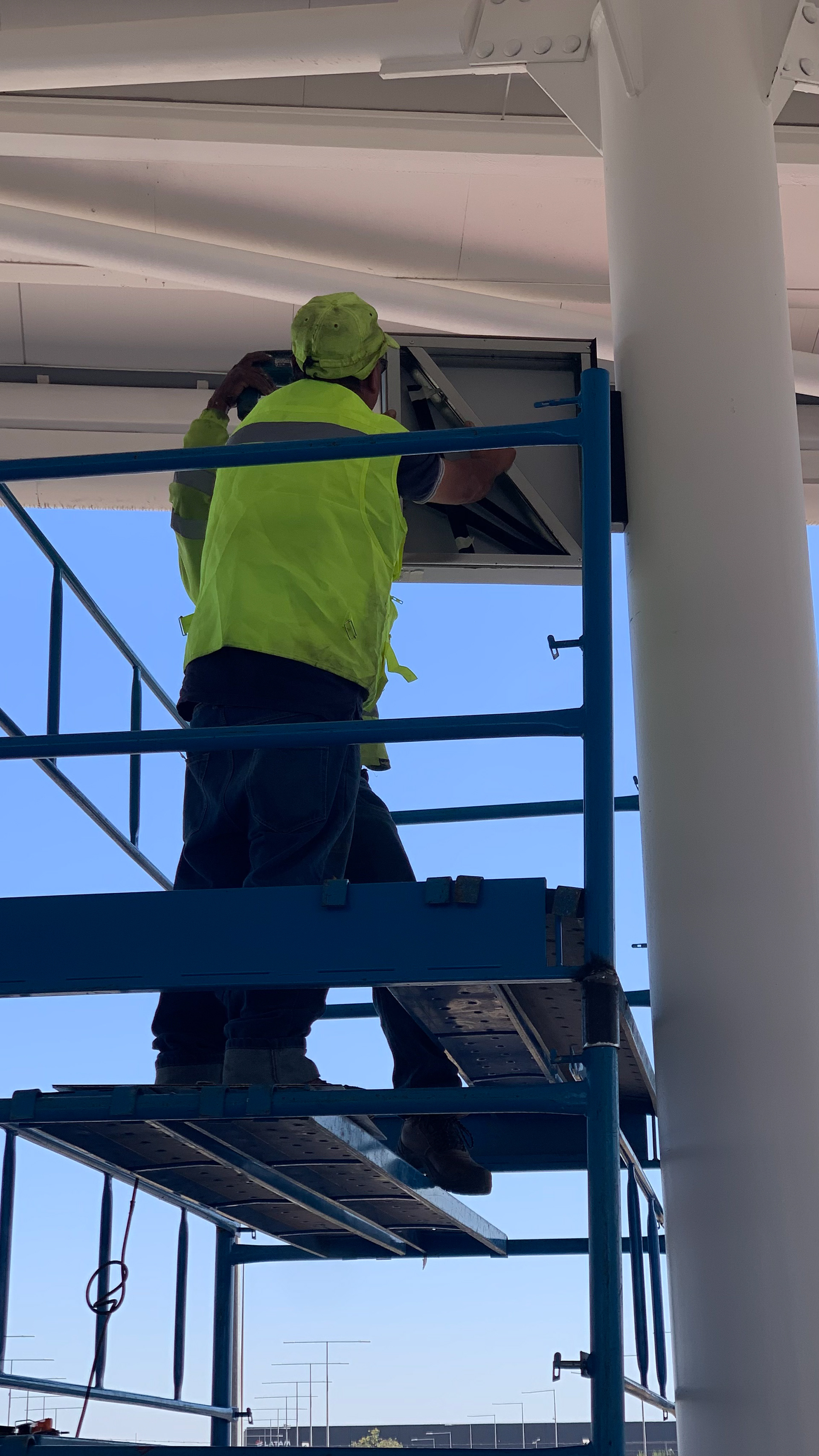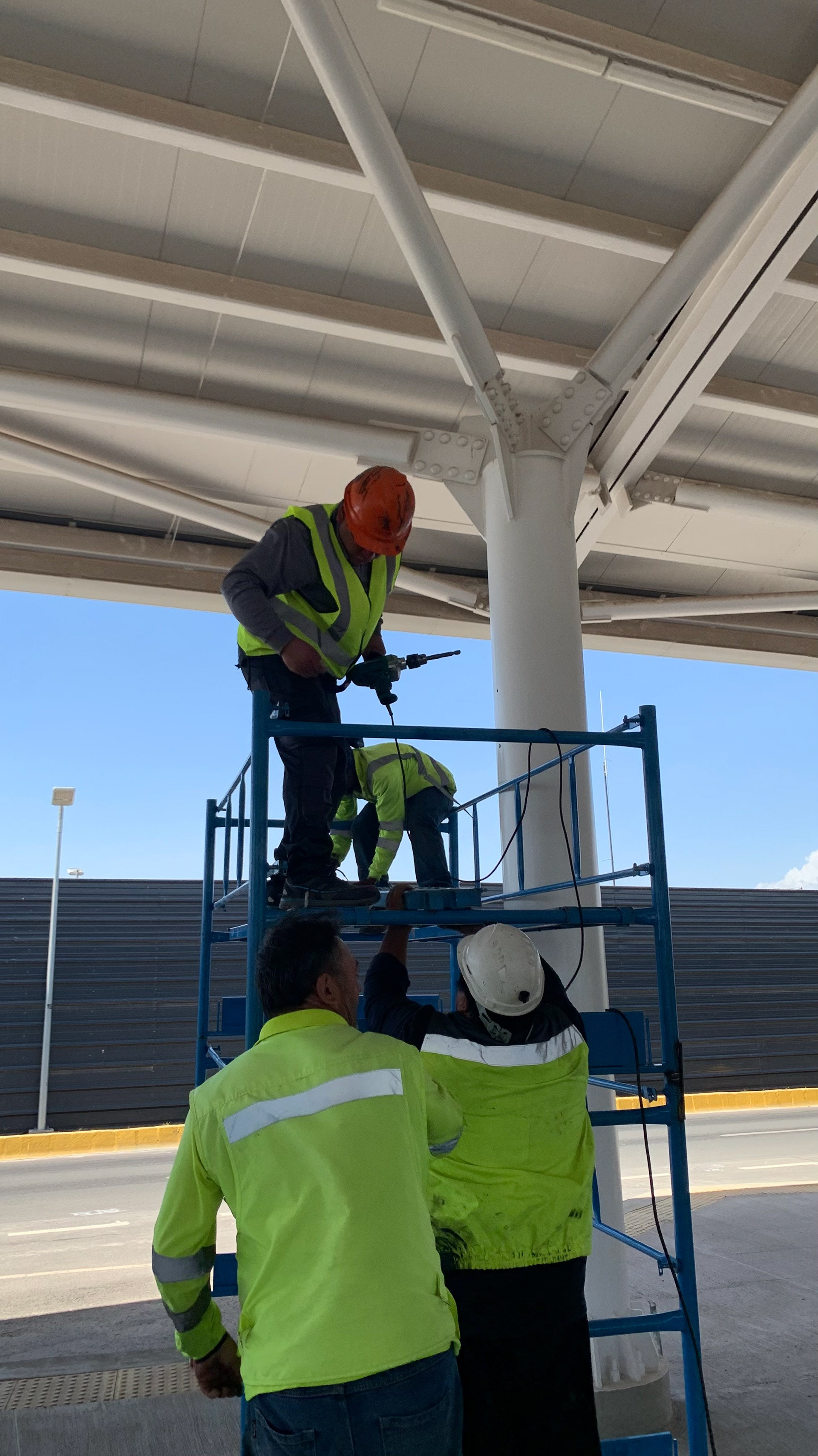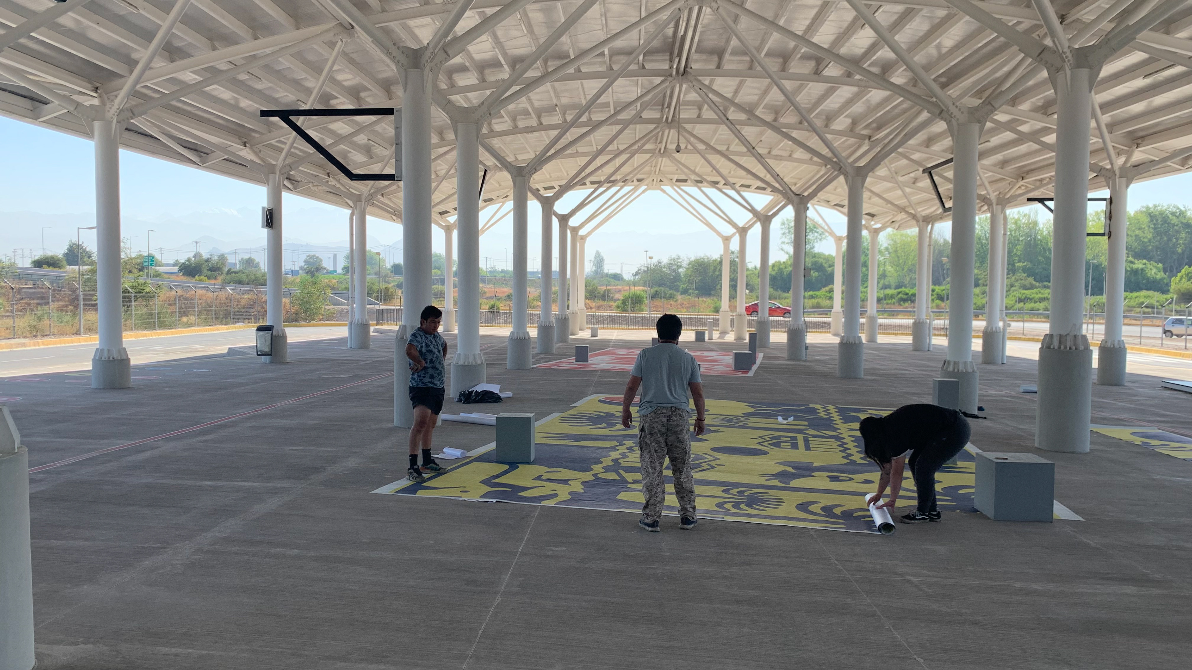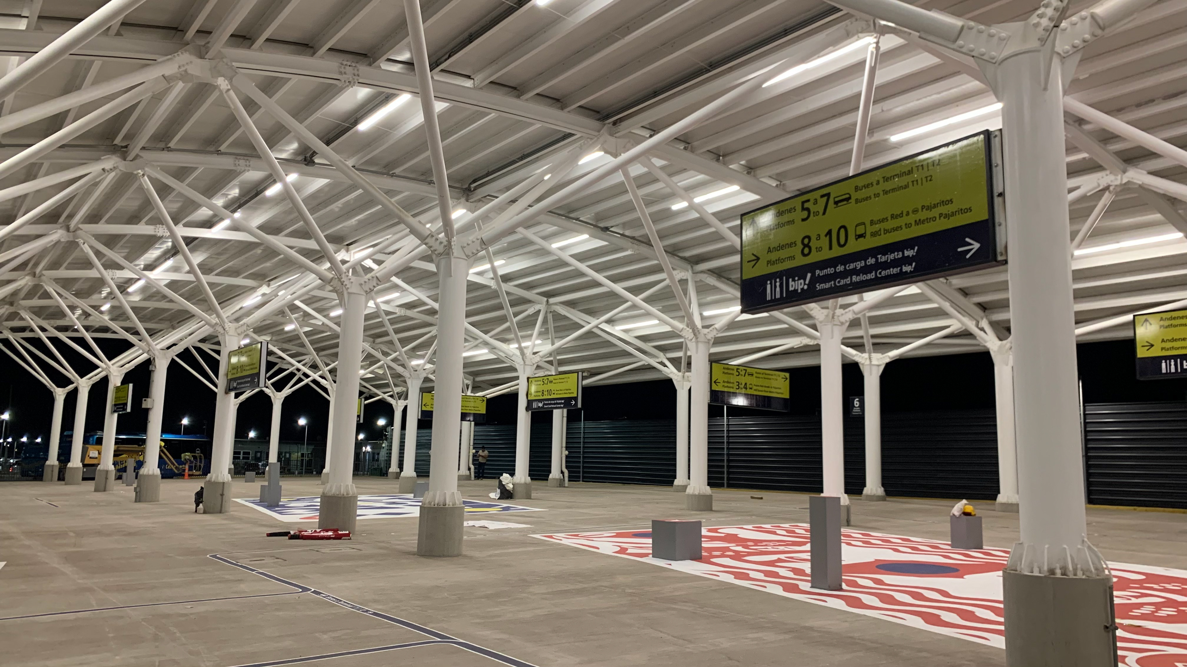 Para del Nuevo Terminal buses de Red de Movilidad en el Aeropuerto Internacional Arturo Merino Benites de la ciudad de Santiago de Chile