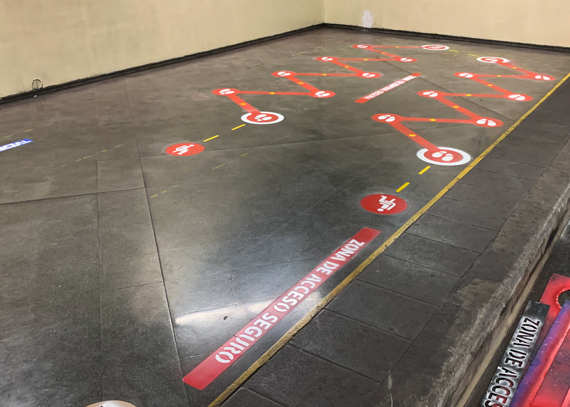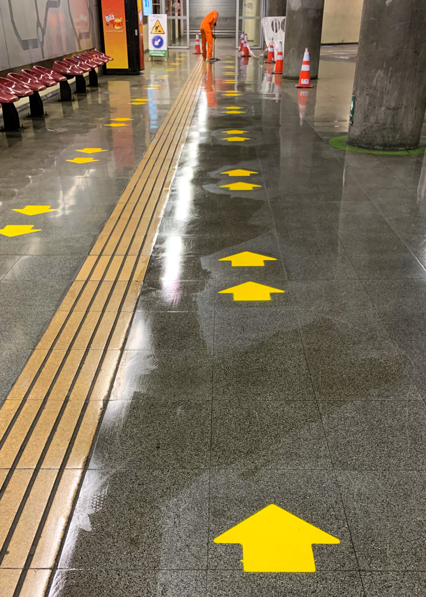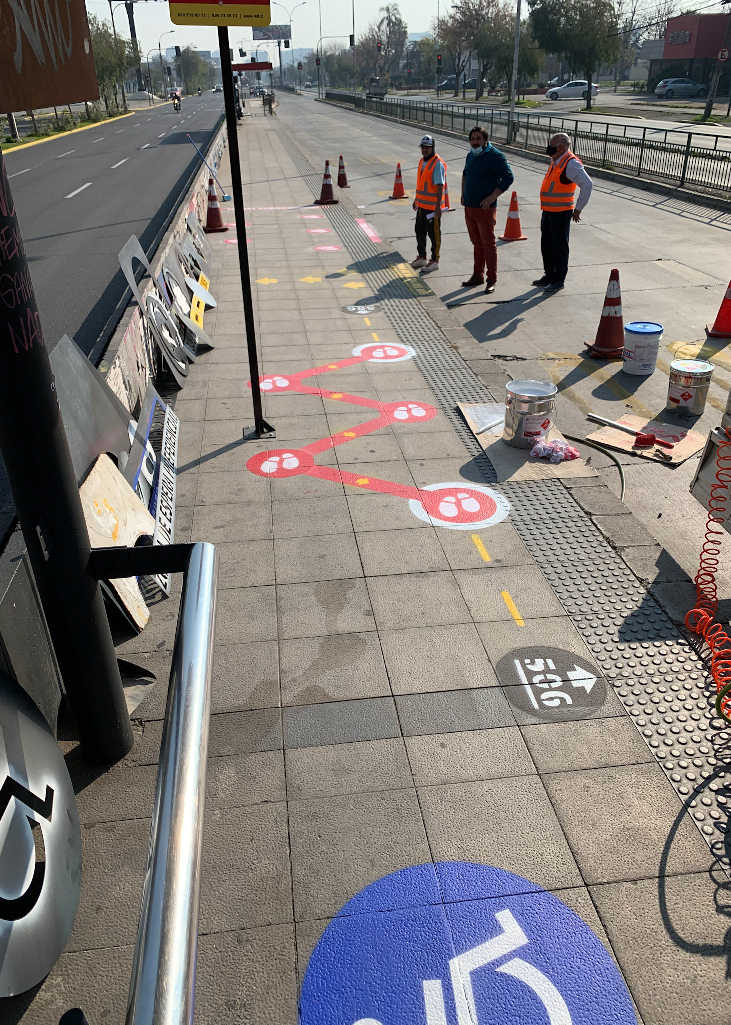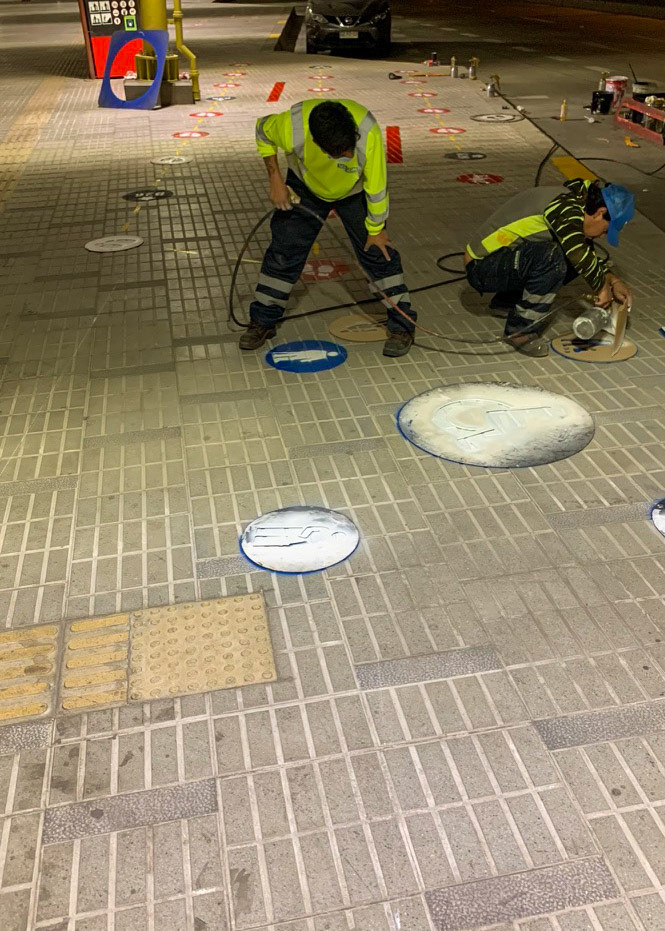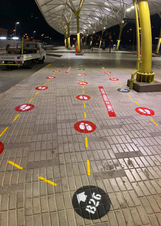 Proyecto de demarcación, para el distanciamiento social por el COVID-19 implementados en los puntos de parada e intercambiadores del Sistema de Transporte Público Metropolitano (RED). Santiago - Chile